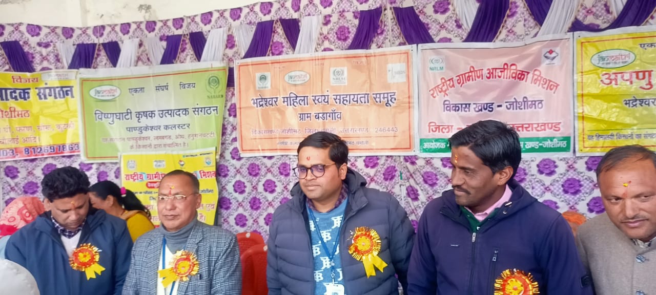कार्यक्रम में सहायक कृषि आधिकारी रघुवीर कमदी, एचडीएफसी बैंक के शाखा प्रबंधक, जन मैत्री के सचिव प्रदीप चौहान, हरित क्रांति के अध्यक्ष नरेंद्र नेगी, मोहन कमदी भद्रेश्वर एफपीओ, रम्मण एफपीओ से भगवती प्रसाद, वीरेंद्र, विक्रम गौड़, सुनिल तिवारी, मोहन बिष्ट, जितेंद्र, अनुप सेमवाल,चंद्रशेखर, एनआरएलएम के कार्यकर्ता गोतम, रूपा जी बाल विकास से परियोजना अधिकारी नीरू पांडे,गुड्डी डिमरी जी जन्मैत्री संस्था से मोहन बिष्ट, अभिषेक पंवार, जितेंद्र, अमित पंवार रीना देवी जानकी देवी, अनिता पंवार , छुमा देवी सहित स्वयं सहायता समूहों के 70से अधिक सदस्यों ने प्रतिभाग किया।