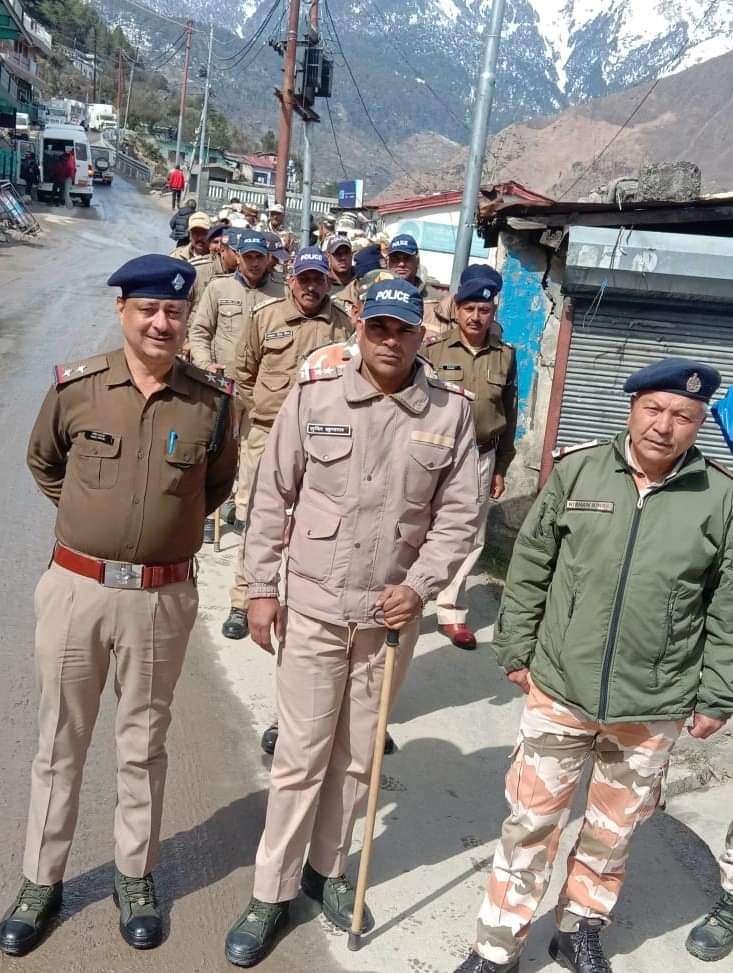 आगामी लोकसभा सामान्य निर्वाचन 2024 को पारदर्शी,निर्बाध एंव शान्ति पूर्ण तरीके से सम्पन्न करवाने हेतु पुलिस अधीक्षक चमोली रेखा यादव के दिशा-निर्देशन पर कोतवाली जोशीमठ द्धारा अपने थाना क्षेत्रान्तर्गत अर्धसैनिक बालों के साथ फ्लैग मार्च कर आम मतदाता से आगामी लोकसभा सामान्य निर्वाचन में बिना किसी के दबाव में आये हुए भयमुक्त एंव निष्पक्ष होकर अधिक से अधिक मतदान करने, की अपील की गयी।