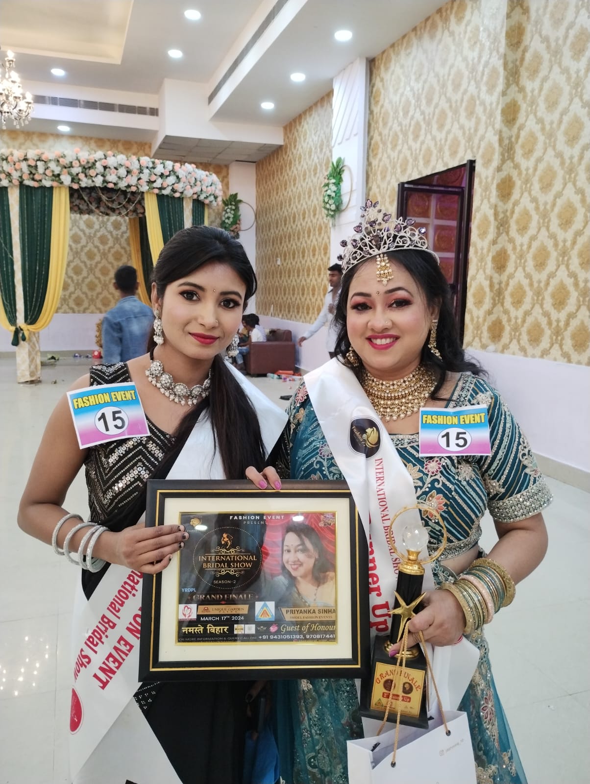इंटरनेशनल ब्राइडल शो के ग्रैंड फिनाले में बतौर मुख्य अतिथि एमएलसी अनामिका सिंह, मेयर सीता साहू, उप मेयर रेशमी चंद्रवंशी उपस्थित थी। कार्यक्रम की शुरूआत दीप प्रज्जवलित कर की गयी। इसके बाद सभी अतिथियों को फैशन इवेंट के डायरेक्टर दीपू राज ने फूल-बुके, शॉल और मोमेंटो देकर सम्मानित किया। फिनाले में पूरे बिहार से आयी प्रतिभागियों ने बढ़चढ़कर हिस्सा लिया और रैंप पर जलवा बिखेरा।
