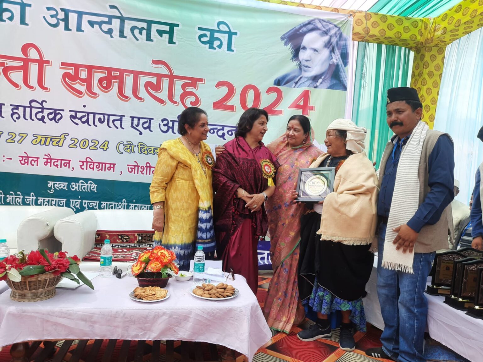 इस मौके पर मुख्य अतिथि द्वारा स्व0 गौरा देवी के पुत्र चन्द्र सिंह, पुत्रबधू मेघुली देवी,चिपको आंदोलन के सहयोगी बाली देवी,व जेठूली देवी आदि को स्मृति चिन्ह देकर सम्मानित किया