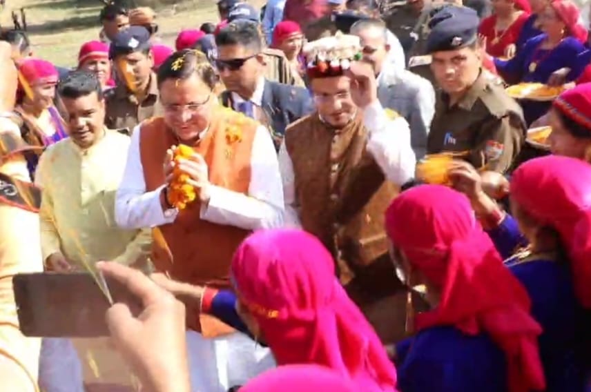 मुख्यमंत्री श्री पुष्कर सिंह धामी आज यमुनाघाटी क्रीड़ा एवं सांस्कृतिक विकास समारोह में प्रतिभाग करने डामटा पहॅुंचे थे। सूरत स्टेडियम डामटा कांडी में आयोजित इस समारोह में हजारों की संख्या में जुटे स्थानीय लोगों ने पारंपरिक ढंग से मुख्यमंत्री का भव्य स्वागत किया। मुख्यमंत्री ने मेले में जुटे ग्रामीणों के साथ रवांई-जौनसार-जौनपुर क्षेत्र के पारंपरिक लोक नृत्य में भी हिस्सा लिया।