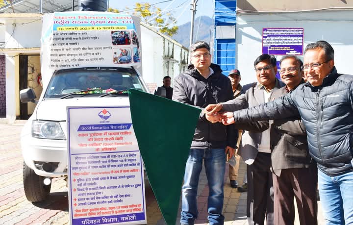चमोली । चमोली जिले में सड़क दुर्घटनाओं को रोकने और आमजन को यातायात नियमों के प्रति जागरूक करने को लेकर परिवहन विभाग के तत्वाधान में सड़क सुरक्षा माह का शुभारंभ किया गया है। यह अभियान 15 फरवरी तक चलाया जाएगा। जिलाधिकारी संदीप तिवारी ने शुक्रवार को क्लेक्ट्रेट परिसर से सड़क सुरक्षा माह का शुभारंभ करते हुए जागरूकता वैन को हरी झंडी दिखाकर विकासखंडों के लिए रवाना किया। जिलाधिकारी ने कहा कि सड़क सुरक्षा वैन जिले के सभी विकासखंडों में जाकर सुरक्षित यातायात नियमों के प्रति लोगों को जागरूक करने का काम करेगी। इस वैन में नेत्र विशेषज्ञ के साथ ही आंखों की जांच के लिए सभी आधुनिक उपकरण है। जिससे वाहन चालकों एवं आम जन की भी नेत्र रोगों की मौके पर ही निःशुल्क जांच की जाएगी और 60 वर्ष से अधिक उम्र के वाहन चालकों को निःशुल्क चश्मा भी उपलब्ध कराया जाएगा। जिलाधिकारी ने कहा कि सीमांत जनपद चमोली के लिए यह पहल लाभदायक सिद्व होगी। इससे सड़क दुर्घटनाओं की रोकथाम में मदद मिलेगी। इस मौके पर अपर जिलाधिकारी विवेक प्रकाश, मुख्य चिकित्सा अधिकारी डा0 अभिषेक गुप्तान, जिला परिवहन अधिकारी ज्योति शंकर मिश्र आदि मौजूद थे।