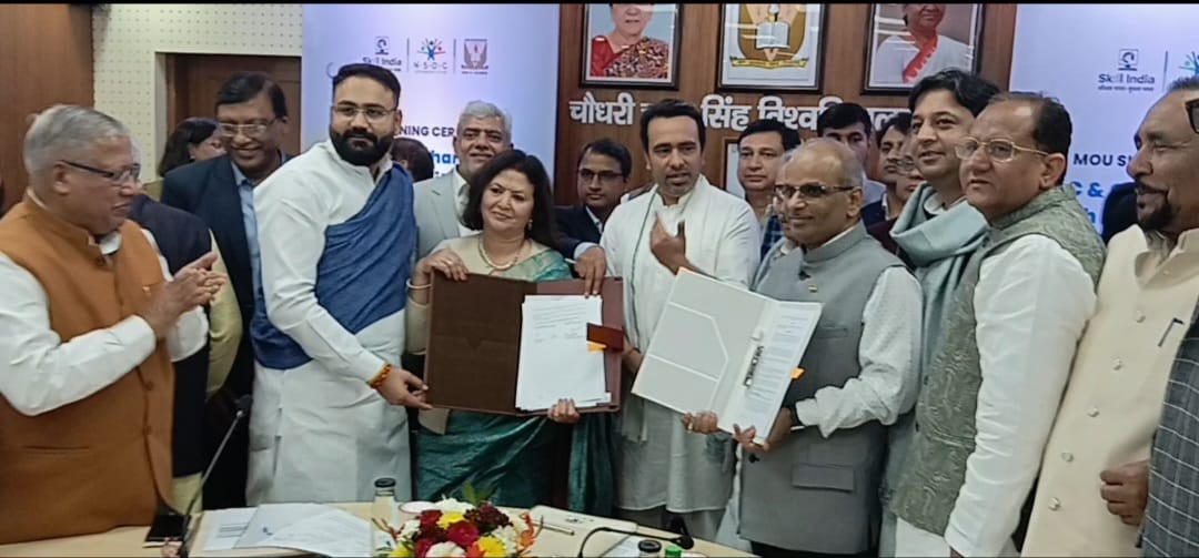 पहला समझौता ज्ञापन एनएसडीसी के सीईओ एवं एमडी श्रीवेद मणि तिवारी और सीसीएसयू की कुलपति प्रो. संगीता शुक्ला के बीच हस्ताक्षरित हुआ, जिसका उद्देश्य मुख्यधारा की शिक्षा में कौशल विकास को एकीकृत करना है। दूसरा समझौता एसपीईएफएल-एससी के सीईओ तहसीन जाहिद और प्रो. संगीता शुक्ला के बीच हुआ, जो स्वयं सहायता समूहों (एसएचजी) की 600 महिलाओं को बैडमिंटन रैकेट और शटल कॉक के निर्माण-केंद्रित प्रशिक्षण के माध्यम से सशक्त बनाने के लिए किया गया। इस अवसर पर जयंत चौधरी ने कहा, “मेरठ में ‘भविष्य कौशल केंद्र’ की स्थापना छात्रों को आर्टिफिशियल इंटेलिजेंस, हेल्थकेयर, मशीन लर्निंग जैसे नए जमाने के पाठ्यक्रमों में प्रशिक्षण प्राप्त करने का शानदार अवसर प्रदान करेगी। इस तरह की पहल से छात्रों को नई तकनीकों में कुशल बनाया जाएगा, जिससे वे उद्योगों में अपनी पहचान बना सकेंगे।” इस साझेदारी का उद्देश्य हाई-डिमांड सेक्टरों में व्यावहारिक प्रशिक्षण प्रदान करना और कौशल-आधारित कार्यक्रमों को अकादमिक पाठ्यक्रमों से जोड़कर रोजगार क्षमता को बढ़ाना है। यह ‘स्किल इंडिया डिजिटल हब’ (एसआईडीएच), ‘एनएसडीसी जॉबएक्स और एनएसडीसी इंटरनेशनल’ का उपयोग करके भारत और विदेशों में कौशल प्रशिक्षण और रोजगार के अवसर उपलब्ध कराएगा।