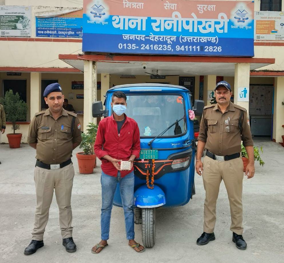 देहरादून: बीरेन्द्र प्रसाद पुत्र पंचम लाल निवासी ग्राम घमण्डपुर, थाना रानीपोखरी, जनपद देहरादून द्वारा थाना रानीपोखरी पर तहरीर दी गयी कि उनके बेटे की शादी की खरीदारी हेतु वे पलटन बाजार देहरादून गए थे। खरीदारी के उपरांत अपने घर लौटने के लिए उनके द्वारा रैपीडो एप के माध्यम से ऑटो संख्या UK07TE–3689 (TVS KING) को बुक किया गया। ऑटो से घर पहुँचने के उपरांत रैपीडो ऑटो चालक ऋतिक शर्मा द्वारा वादी का विश्वास जीतने के लिए उनके खरीदारी के सामान को ऑटो से नीचे उतारकर घर के अंदर तक रखवाया। इस दौरान ऑटो चालक द्वारा वादी को विश्वास में लेते दिए उन्हें कुछ सामान को अंदर ले जाने तथा बाकी बचे सामान की ऑटो में देखभाल करने की बात कही गयी, जिस पर वादी और उनकी पत्नी सामान को अंदर रखने लगे।