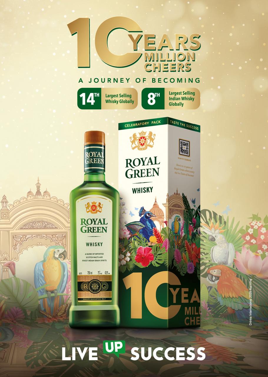 नई दिल्ली। भारत में युवाओं पर केंद्रित सबसे तेजी से विकसित होते हुए व्हिस्की ब्रांड, रॉयल ग्रीन व्हिस्की की फिलॉसफी ‘‘टेस्ट द सक्सेस’’ से ‘‘लिव अप सक्सेस’’ में बदल गई है। साहसी और नई फिलॉसफी ‘‘लिव अप सक्सेस’’ जेन ज़ी और मिलेनियल्स के बदलते दृष्टिकोण के अनुरूप रॉयल ग्रीन व्हिस्की की नई पोज़िशनिंग है। यह पीढ़ी सफलता को न केवल एक पड़ाव, बल्कि दैनिक लम्हों, छोटी-छोटी कामयाबियों और व्यक्तिगत उपलब्धियों के रूप में देखती है।