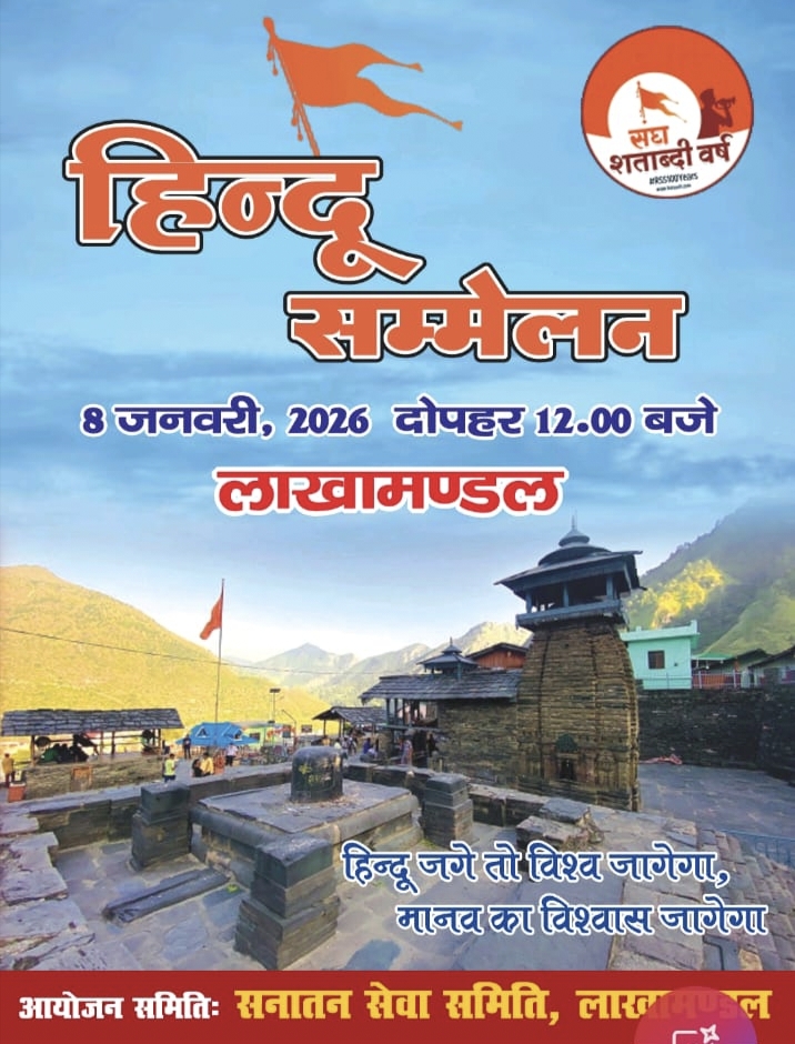महाभारत कालीन शिव नगरी लाखामंडल में सनातन सेवा समिति लाखामंडल द्वारा 8 जनवरी 2026 को एक विशाल हिंदू सम्मेलन आयोजित किया जा रहा है जिसमें सभी संगीत प्रेमी जेष्ठ श्रेष्ठ प्रबुद्धजनों एवं मातृ शक्ति से विनम्र आग्रह है कि आप सपरिवार विशाल हिंदू सम्मेलन को सफल बनाने के लिए अधिक से अधिक संख्या में पहुंचने का कष्ट करें इस कार्यक्रम में मुख्य वक्ता महामण्डलेश्वर पूज्य श्री रुपेंद्र प्रकाश जी महाराज हरिद्वार और श्रीमान दिनेश सेमवाल जी प्रांत कार्यवाह राष्ट्रीय स्वयंसेवक संघ उत्तराखंड द्वारा भारतीय संस्कृति विराट हिन्दू दर्शन सामाजिक समरसता पर उद्बोधन होगा तथा सम्मेलन में उत्तराखंड रंवाई जोनपुर जौनसार बावर के सुप्रसिद्ध लोक गायक अज्जू तोमर एवं अत्तर शाह और रेशमा शाह इस कार्यक्रम की शोभा बढ़ाने के लिए एवं सांस्कृतिक कार्यक्रम मैं अपनी प्रस्तुति देने के लिए उपस्थित रहेंगे।