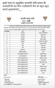 जिसमें क्वासी मंण्डल के लाखामंडल से प्रदीप शर्मा को उपाध्यक्ष व अंकित गौड़ मंत्री भाजपा अनुसूचित जनजाति मोर्चा बनाया गया है।